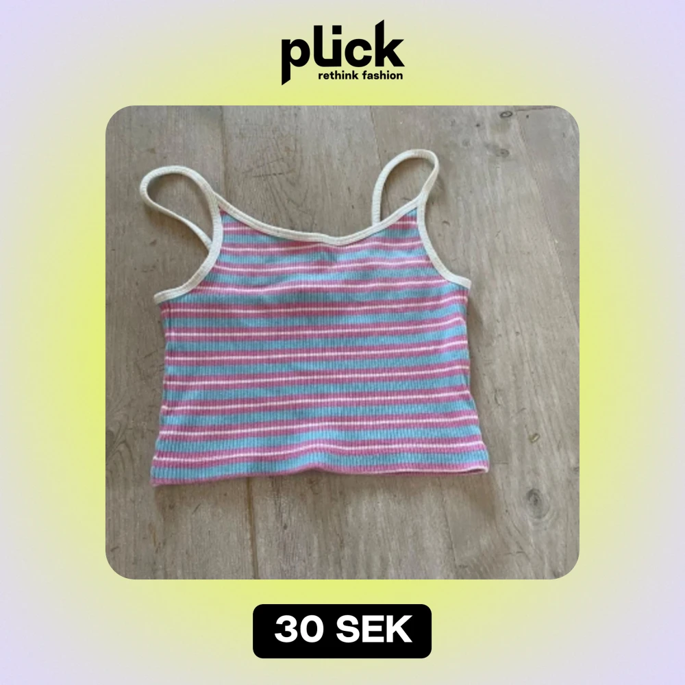 Kort, blå/rosa/vit randigt ribbat linne i bra skick