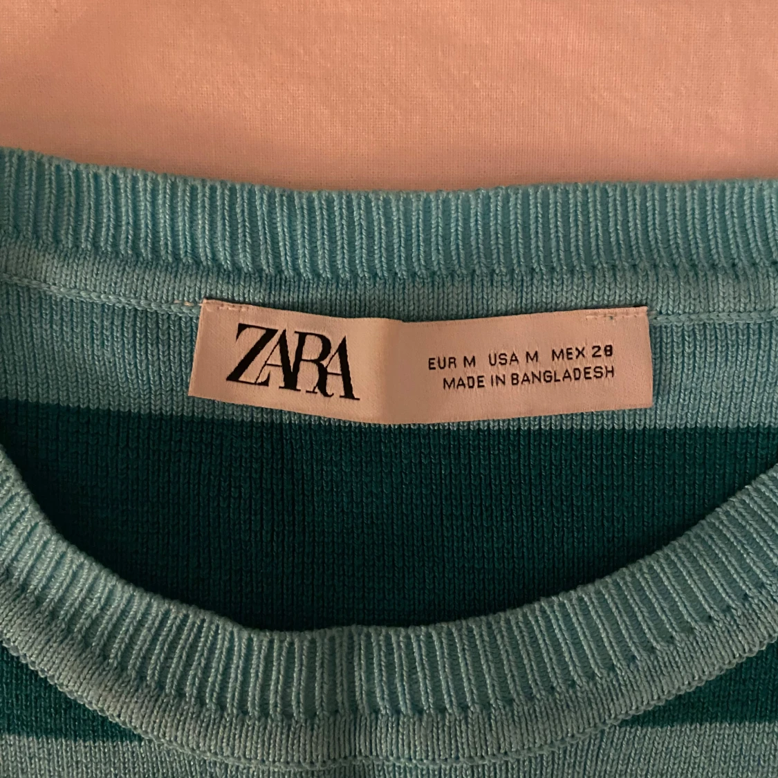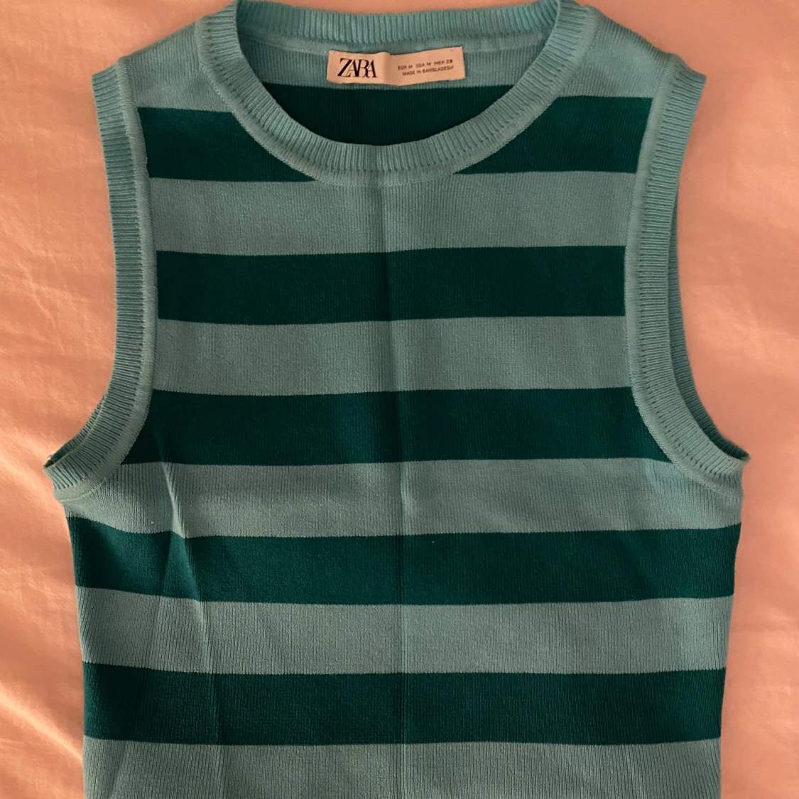 Säljer en snygg ärmlös topp från Zara i blå och turkos randigt mönster. Säljer då jag inte använder längre. Inte använd mer än 2 gånger. Perfekt i storleken men passar även mig som har str S.
