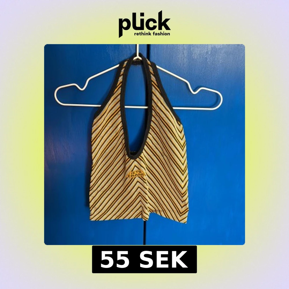 Säljer en randig topp från iets frans... i svart, gul och grå. Halter topp, jätteskön och snygg, använd men i bra skick💛