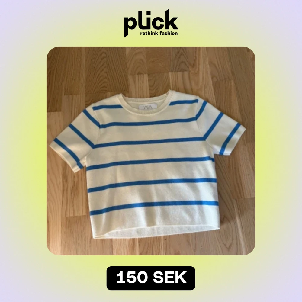 En blå vit randig stickad topp från zara utan fläckar och aldrig andvänd 🩵