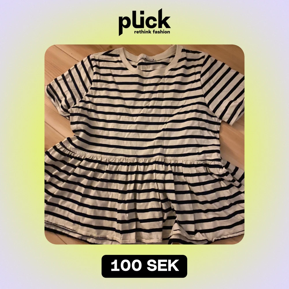 Säljer en superfin randig topp från Zara i svart och vit. Den har korta ärmar och en söt volangdetalj i nederkanten som ger en extra touch. Skicka för mer info eller bilder🥰