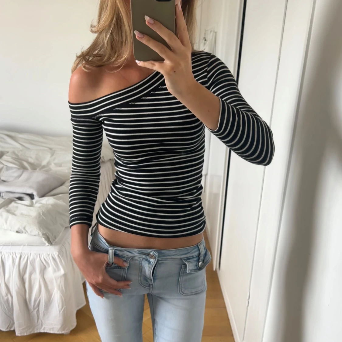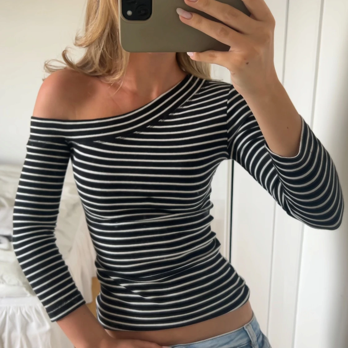 Så najs asymmetrisk topp med trekvartsärmar🤍🖤