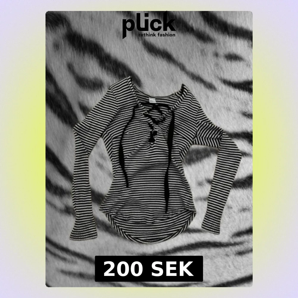 Svart och vit randig tröja. Den är figursydd, sätter så sig snyggt runt midjan.
