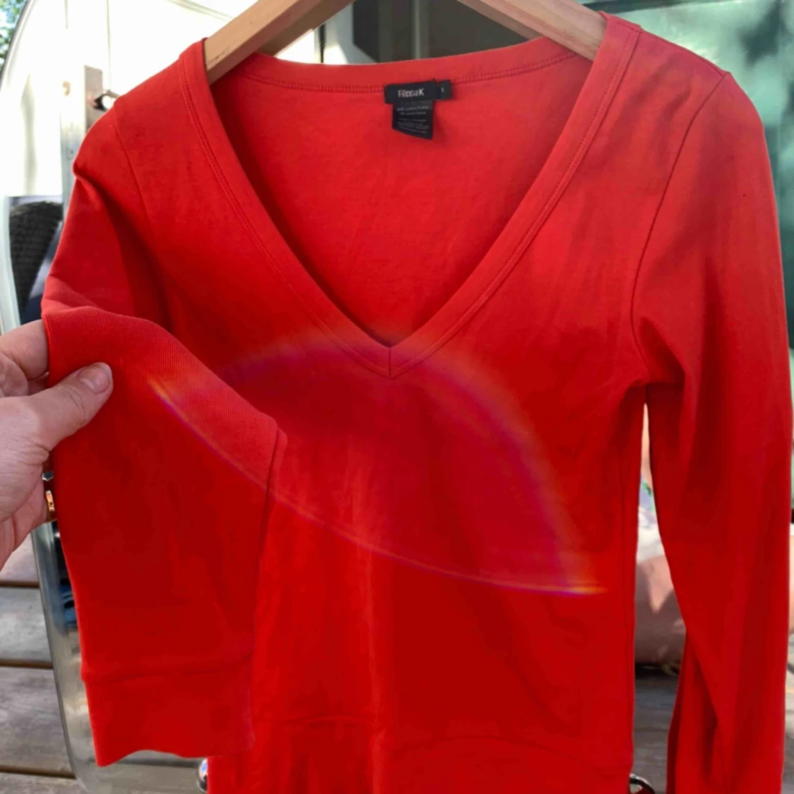 Röd superskön bomullströja som är perfekt att ha ett linne över