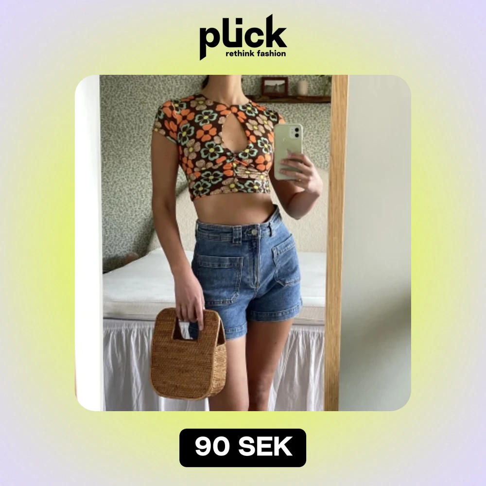 Retro croppad topp med psykedeliskt mönster från Bershka, i fint skick. Perfekt till 60s/70s festen 🌼