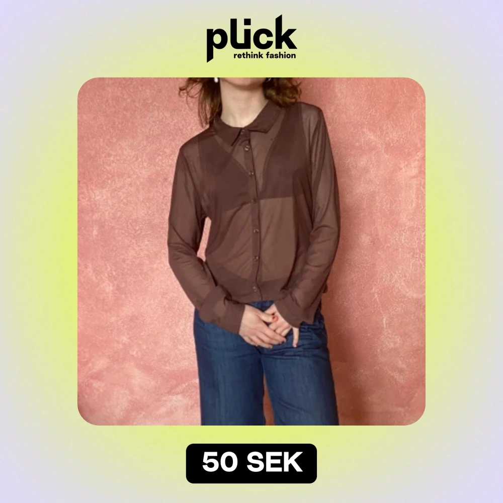 Meshblus/skjorta från H&M! Brun färg, liten krage, går att knäppa hela vägen. Suuuperfin. Gott skick. Snabb affär prioriteras! Hon på bilden är 160 cm och en xs/s.
