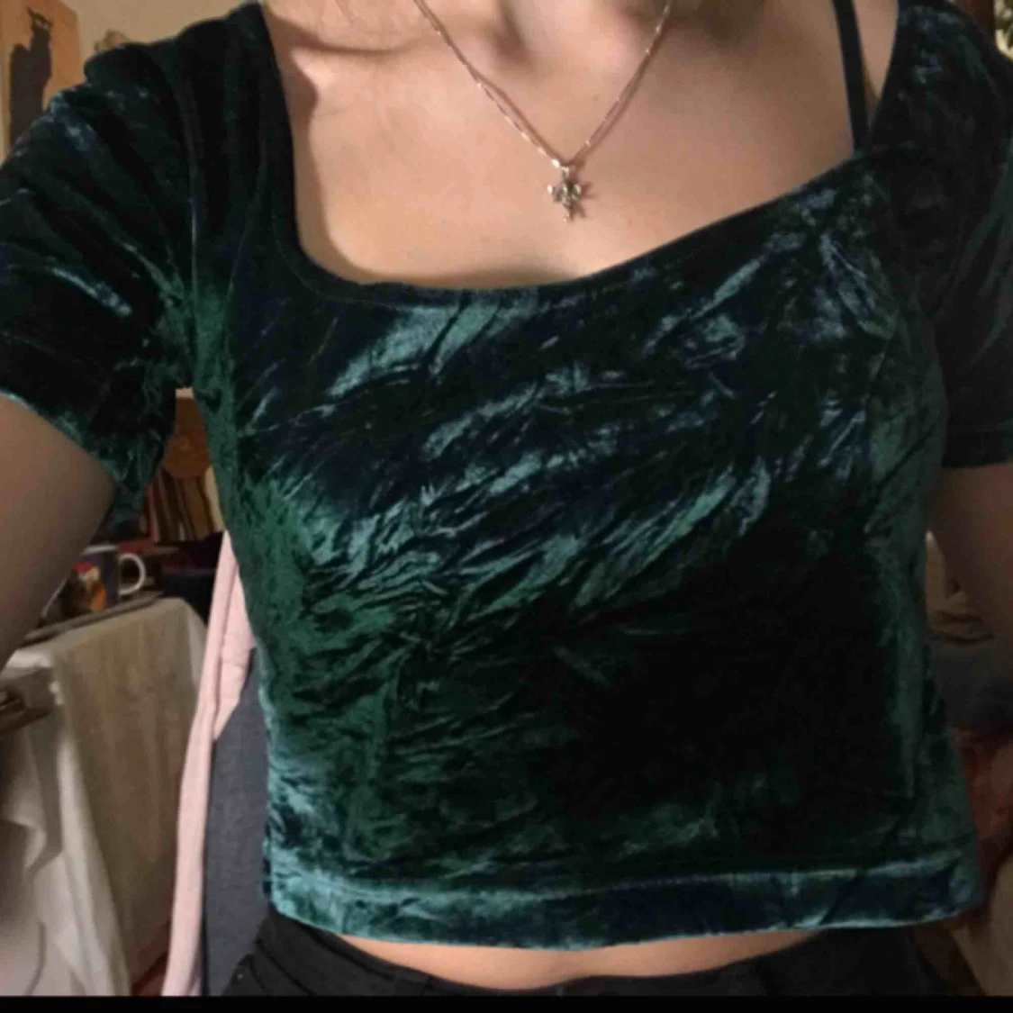 Mörkgrön sammets crop top. Köpt på Beyond retro. Älskar materialet! Möts upp på söder eller annan plats på stan :)