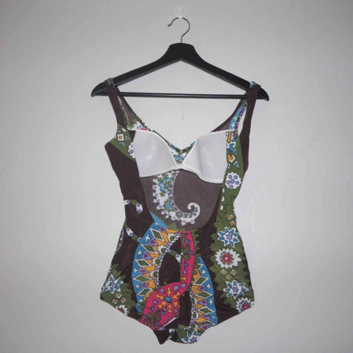 Superfin 60-tals baddräkt köpt på second hand. Brunnas med coolt mönster på. Det står att det är strl 38 men den är snarare strl 36!