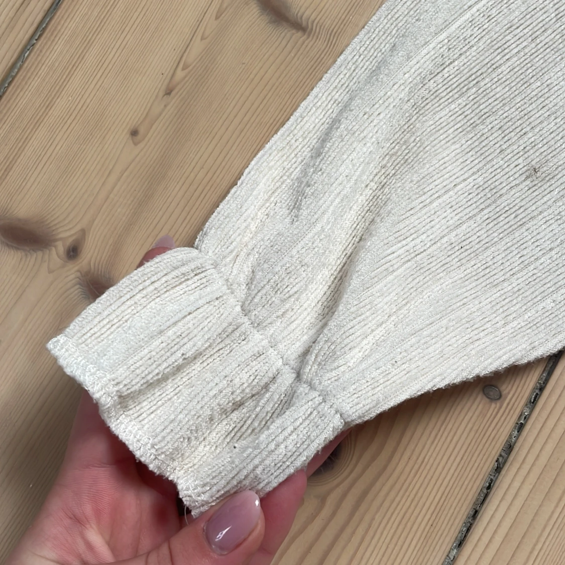 Ribbad beige topp med volang från Zara