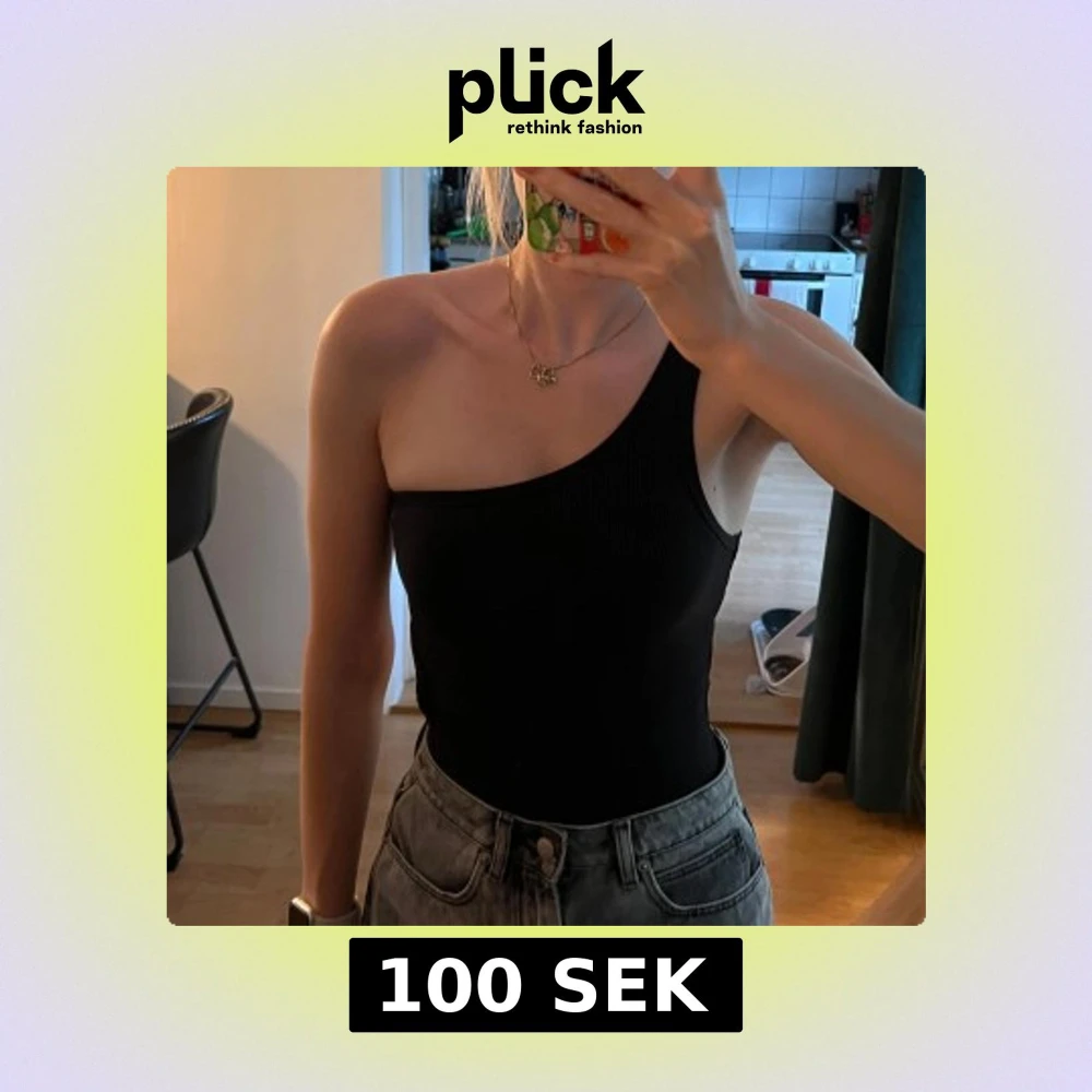 Säljer en svart ribbad body med one shoulder-design och cut out-detalj vid midjan, från Bershka. Mycket bra skick, inga skavanker. XS men passar även S.