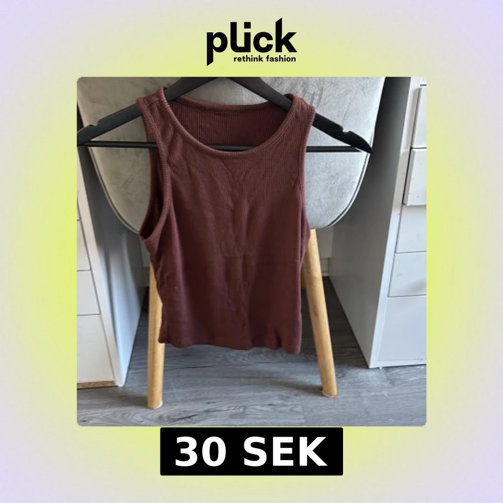 Säljer en ribbad brun linnetopp med rund halsringning. Toppen är ärmlös och har en enkel, stilren design som passar perfekt till jeans eller kjol. Materialet är mjukt och stretchigt för en bekväm passform.