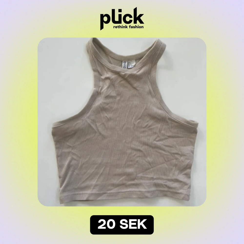 En croppad, figurnära tanktop i ribbad bomullstrikå, storlek S. Toppen är smalt skuren upptill med brottarrygg🤍