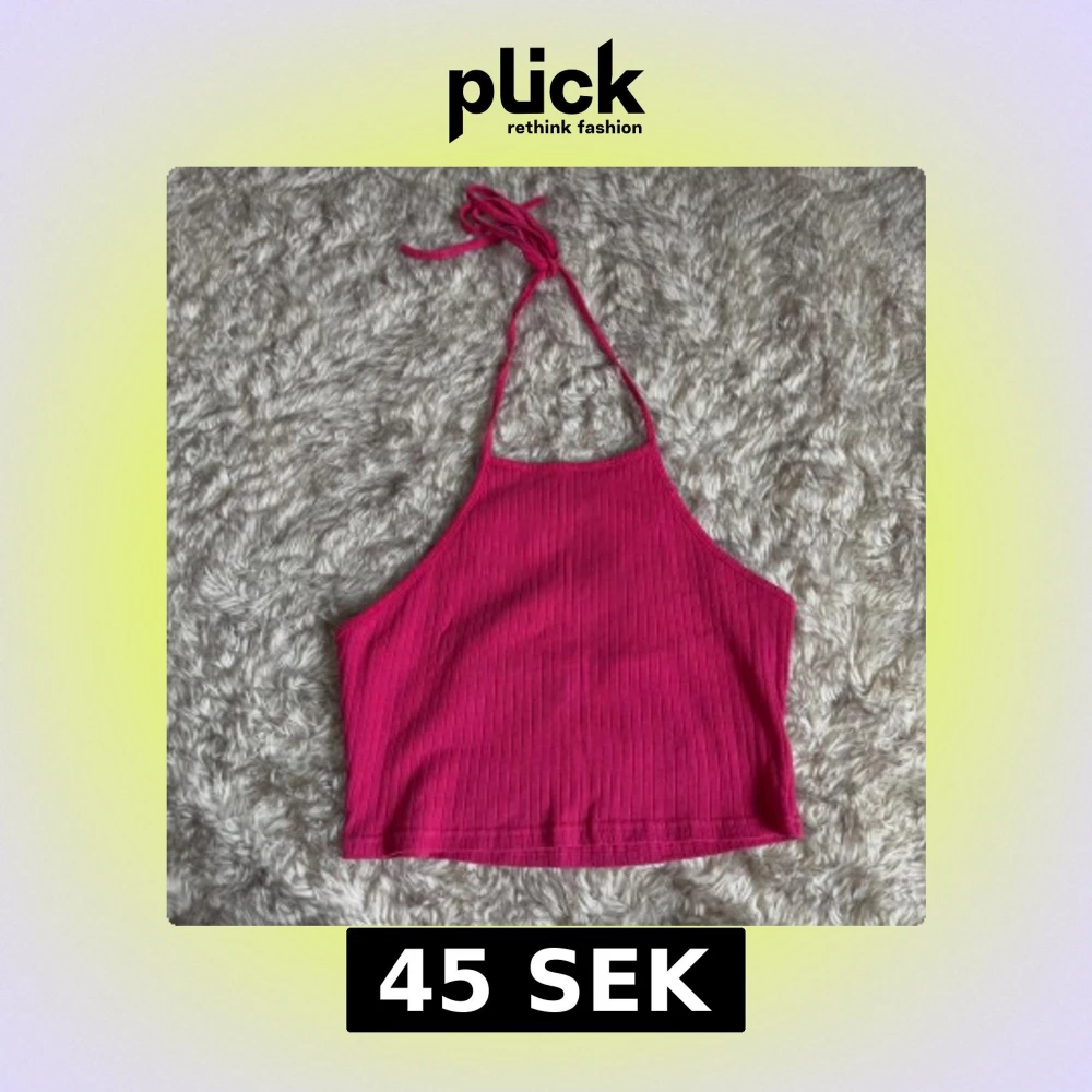 Säljer en ribbad rosa linnetopp i storlek M. Toppen har halterneck med knyt i nacken och är croppad. Perfekt för varma dagar och enkel att matcha med jeans eller kjol.
