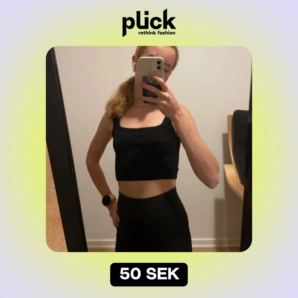 Svart croppat, ribbat top från Zara. Bredare band och kvadratisk urringning bak och fram