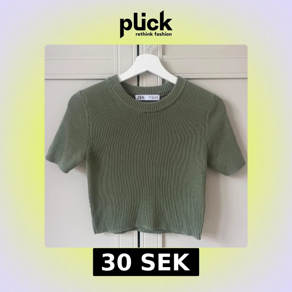 Grön ribbad topp från Zara med korta ärmar och croppad passform. Endast använd 1 gång!
