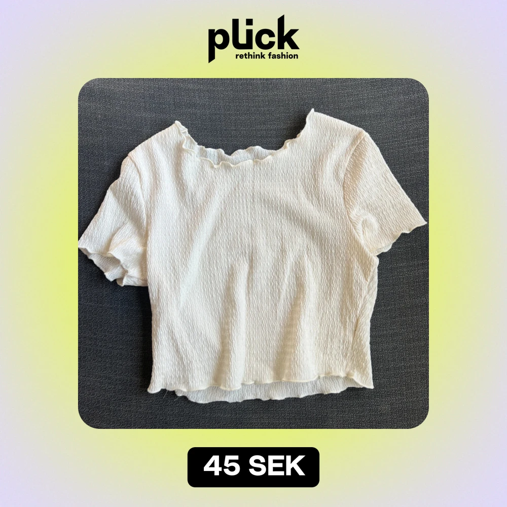 Säljer en söt ribbad topp med korta ärmar och vågig kant. Perfekt för sommardagar eller som ett basplagg i garderoben. Toppen har en mjuk och stretchig känsla, vilket gör den bekväm att bära hela dagen.