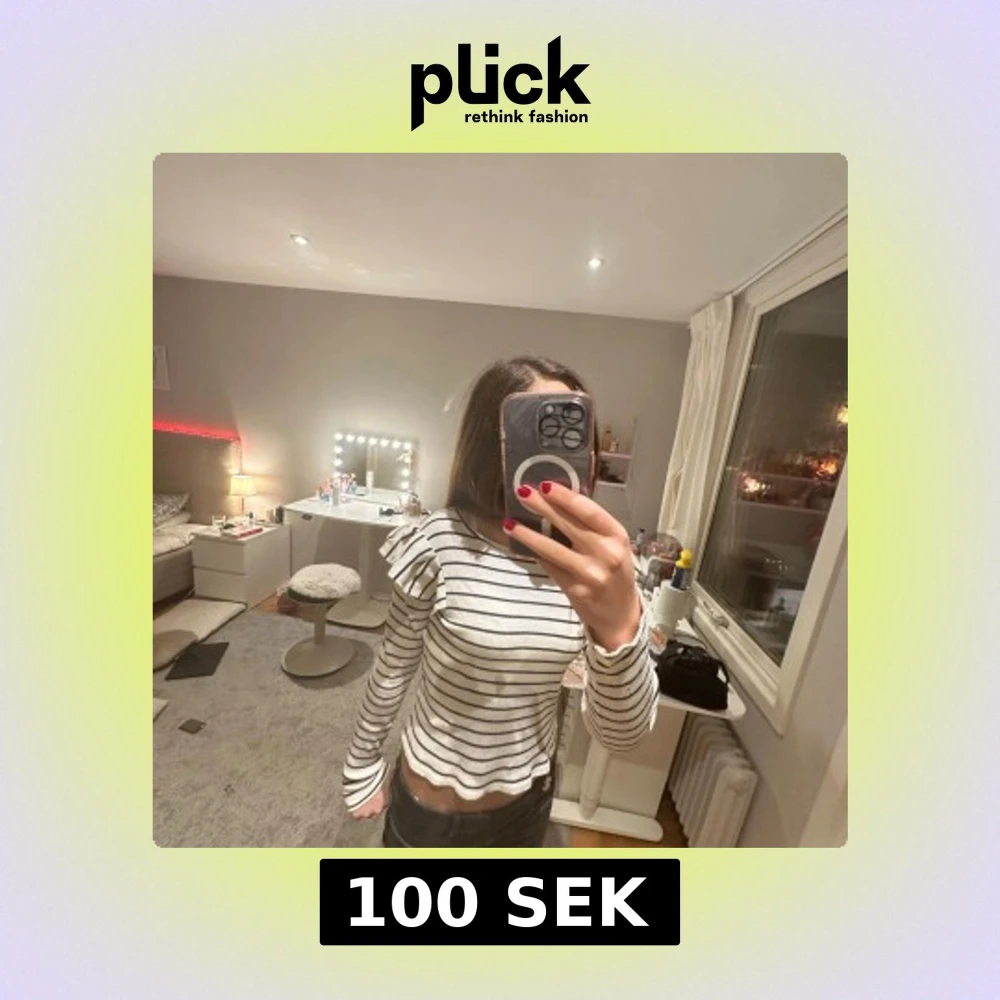 Superfin ribbad topp från Zara i vitt med svarta ränder. Långärmad modell med volangdetaljer på axlarna💓säljer pga att den är för liten för mig men är supersöt!💓pris går absolut att diskutera💓