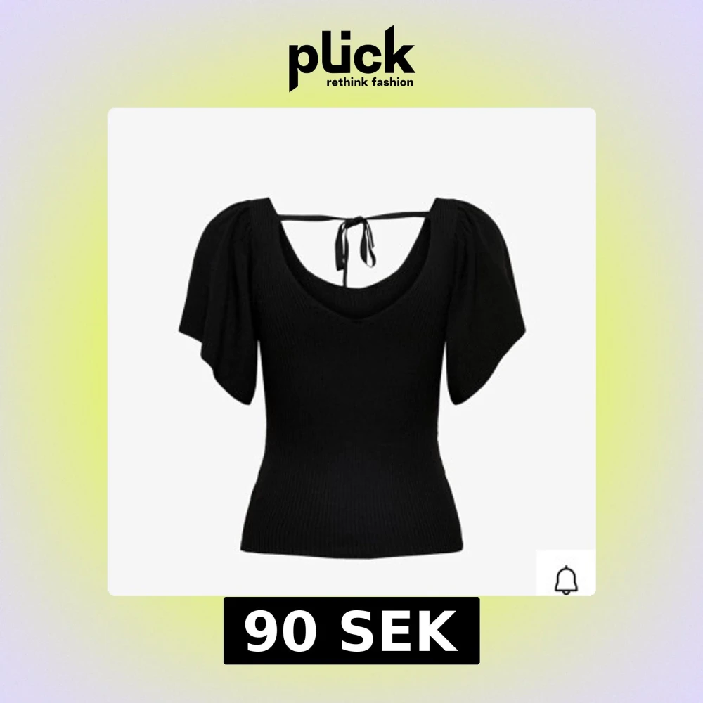 Supersnygg svart ribbad topp från ONLY med v-ringning, korta vida ärmar och knyt i ryggen. Toppen har en figurnära passform och är tillverkad i stretchigt material som sitter bekvämt. Perfekt att styla med jeans eller kjol för en trendig look. Använd några enstaka gånger men inga fläckar eller hål!❣️säljer likadan i vit!🤞🏻