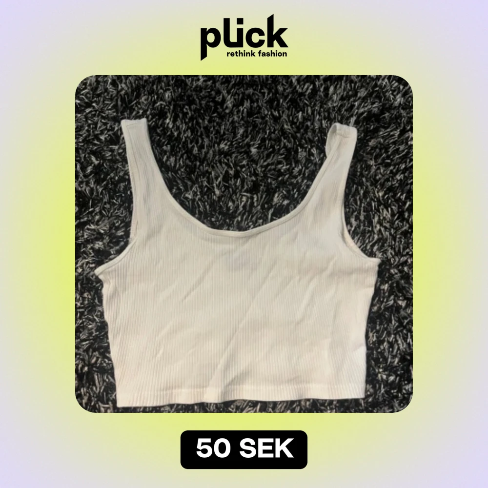 Vitt ribbat, och croppat linne från Gina Tricot. Använd fåtal gånger och säljer för att det är alldeles för litet för mig så inte kommit till användning. Så gott som ny.