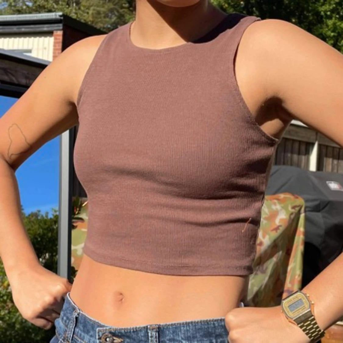 Brunt linne / topp.