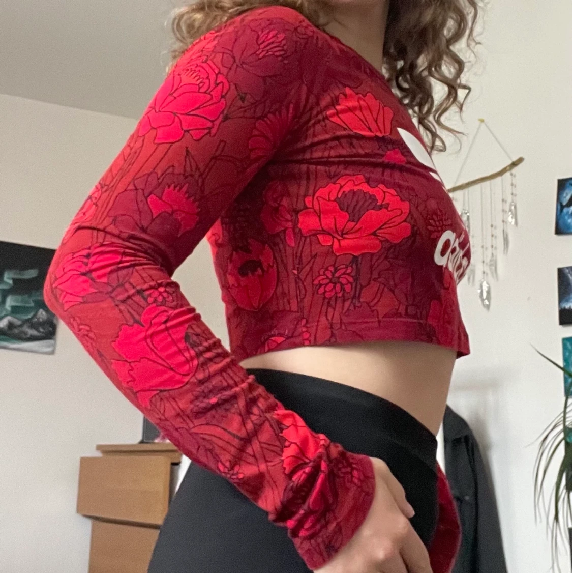 Röd blommig långärmad croptop från Adidas, sparsamt använd.