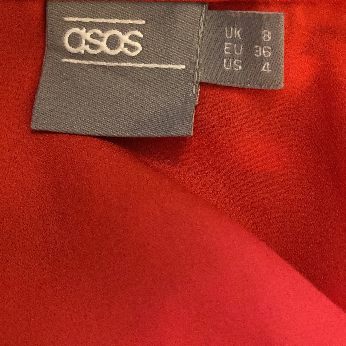 Röd fin topp man knyter fram, från ASOS. Storlek 36 men passar S-L beroende på hur man vill att den ska sitta då man knyter själv. Använd 2-3 gånger, fint skick.