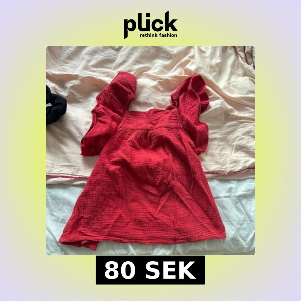 Supersöt röd blus med puffiga kortärmar och fyrkantig ringning. Tillverkad i mjuk, strukturerad bomull som ger en avslappnad och trendig vibe. Perfekt att styla med jeans eller kjol för en cool look. passar mig med xs