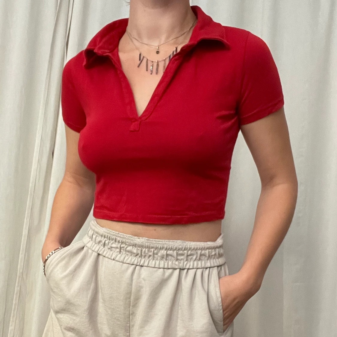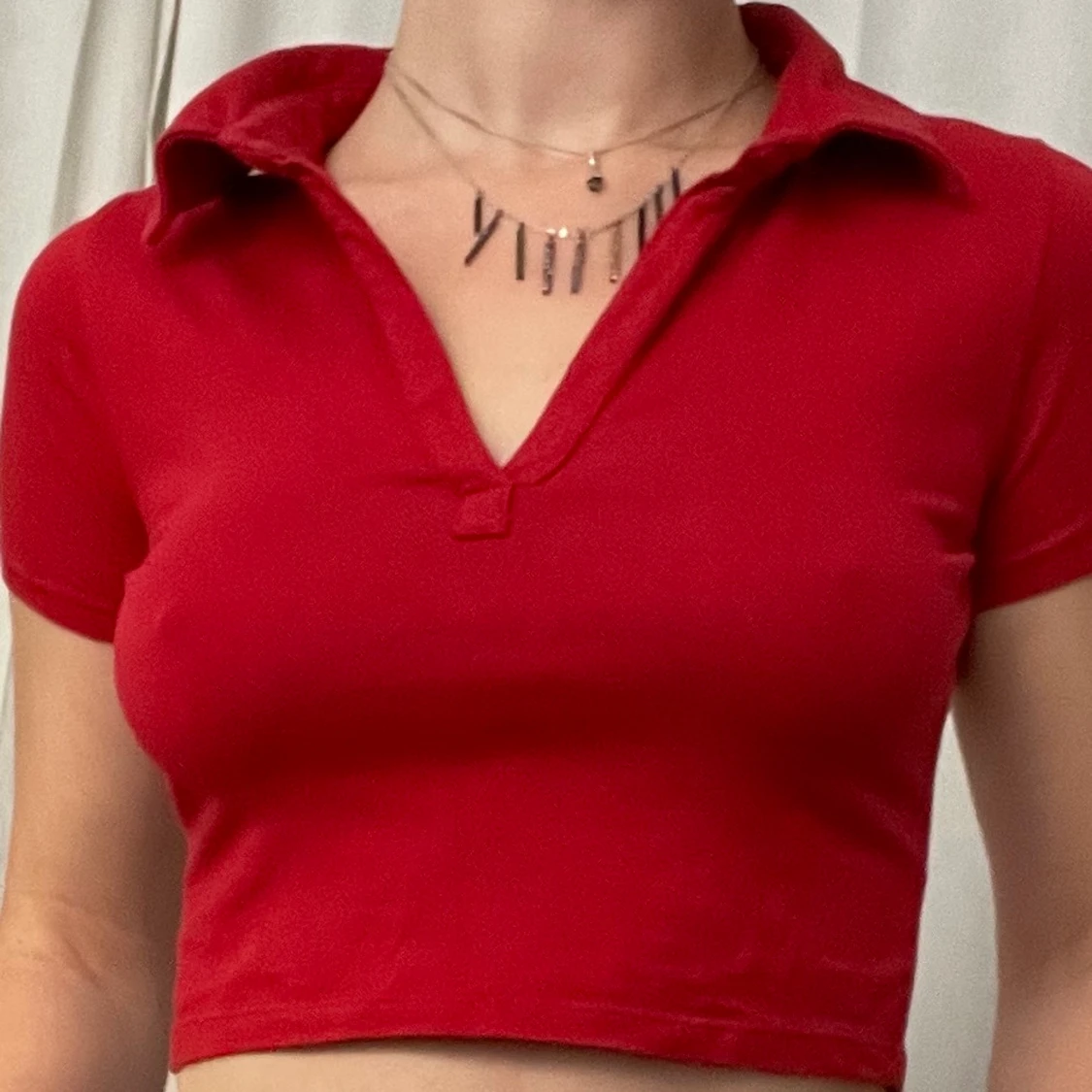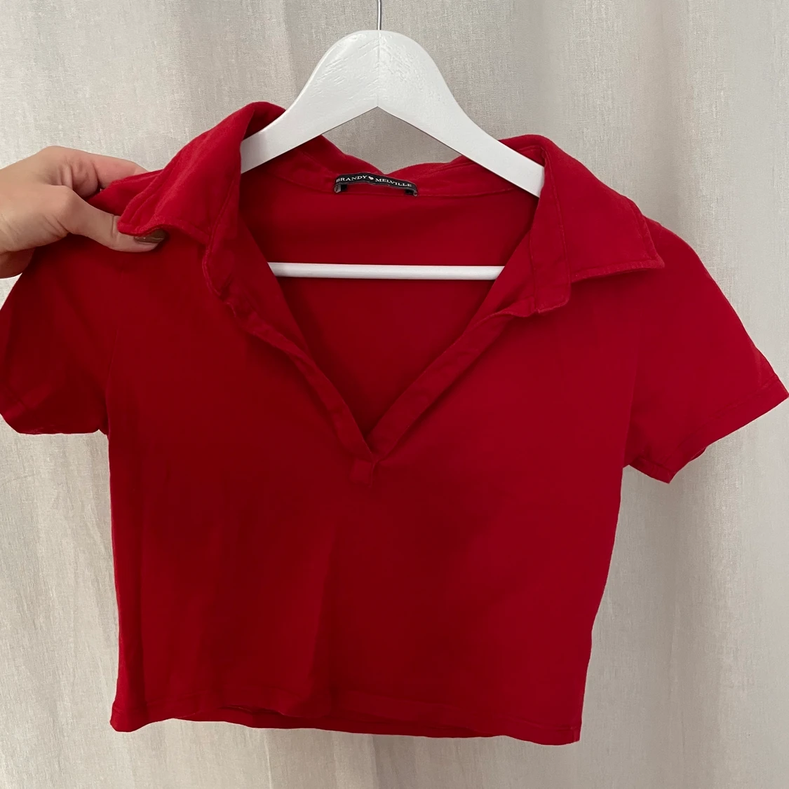 En liten klarröd pikétopp från Brandy Melville. Passar som en Small men är stretchig och skön! Perfekt till en bekväm men snygg vardagsfit ❤️