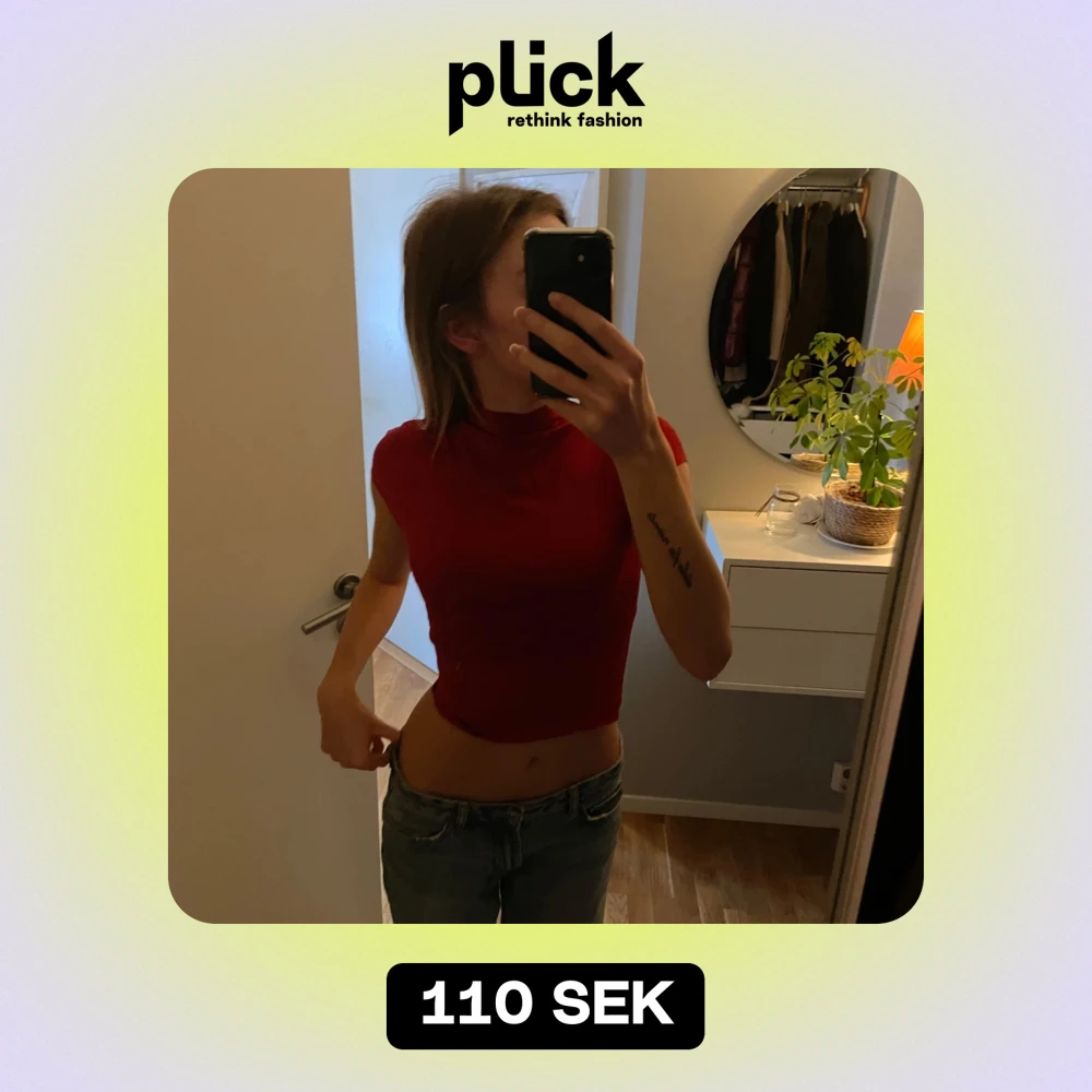 Säljer en snygg röd croppad topp i tight passform. Perfekt för sommardagar eller en utekväll. Toppen är ärmlös och har en hög halsringning som ger en stilren look. Passar bra till jeans eller kjol för en trendig outfit.