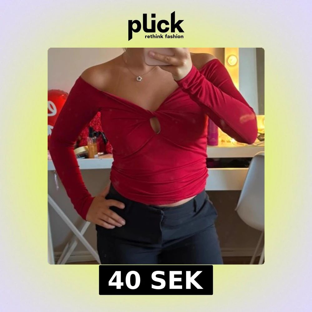Snygg röd offshoulder topp från Gina Tricot med lång ärm och twistad detalj framtill som skapar en liten cut-out. Toppens material är stretchigt och sitter tight. Perfekt för dig som vill sticka ut med en trendig look.
