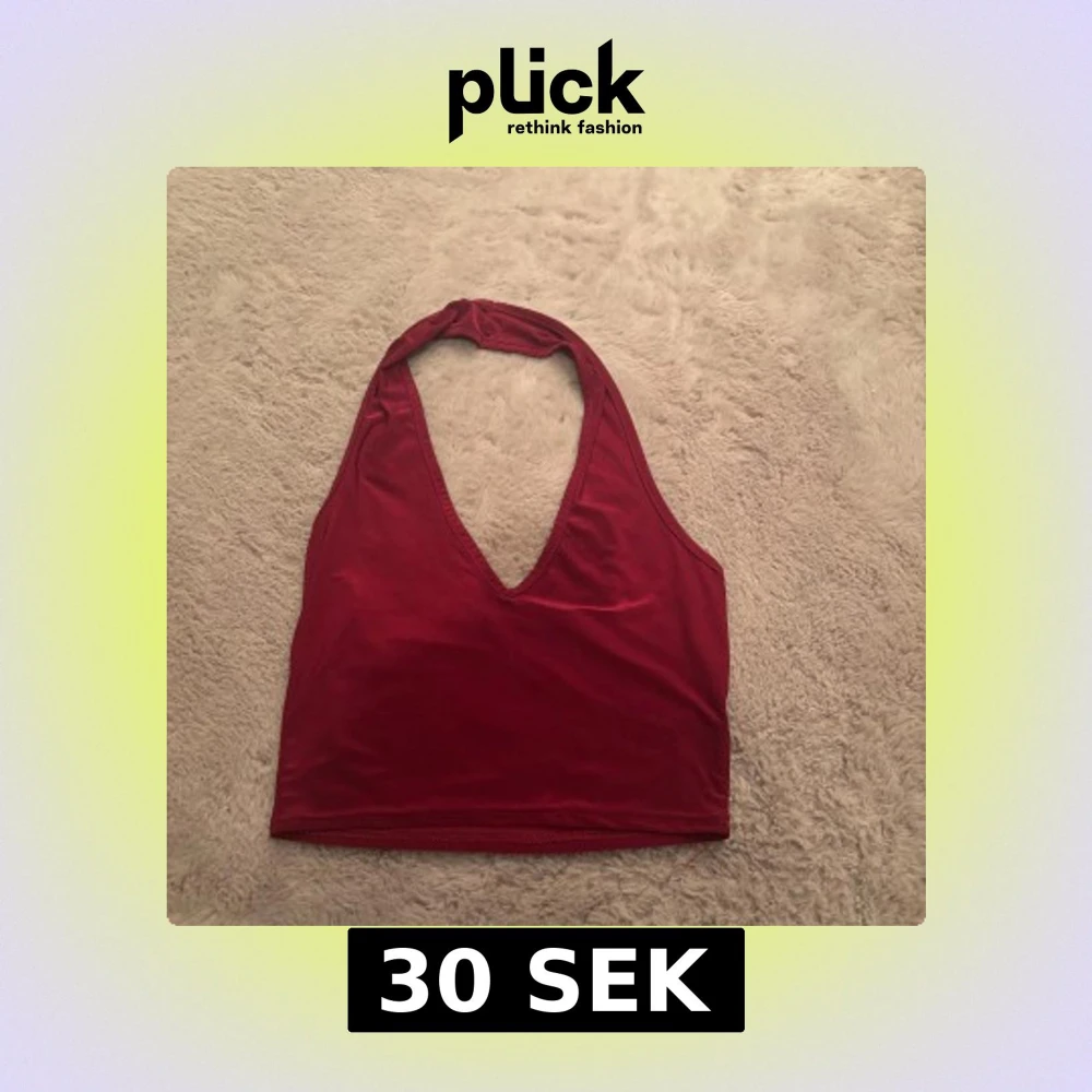 Snygg röd halterneck topp från Boohoo med djup v-ringning och croppad passform. Toppen är ärmlös och tillverkad i ett mjukt, stretchigt syntetmaterial som sitter bekvämt. Perfekt för att lyfta vilken outfit som helst.