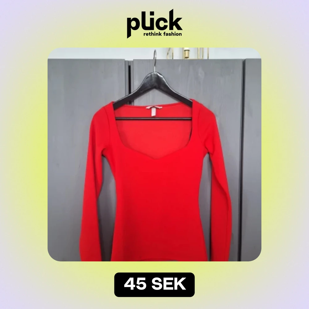 H&M oanvänd röd topp med hjärtformad urringning strl XS