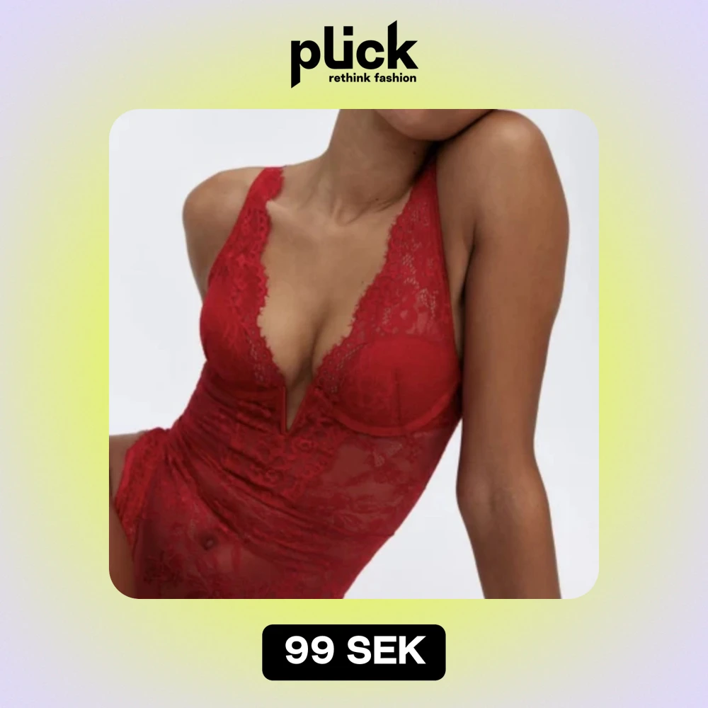 Superfin string body i röd spets som köptes förra veckan på H&M. Tyvärr var den för liten när jag kom hem och prova den (kunde inte lämna tillbaka då jag skulle ha den på fest och drog bort prislappen direkt . Nypris var 299 kr