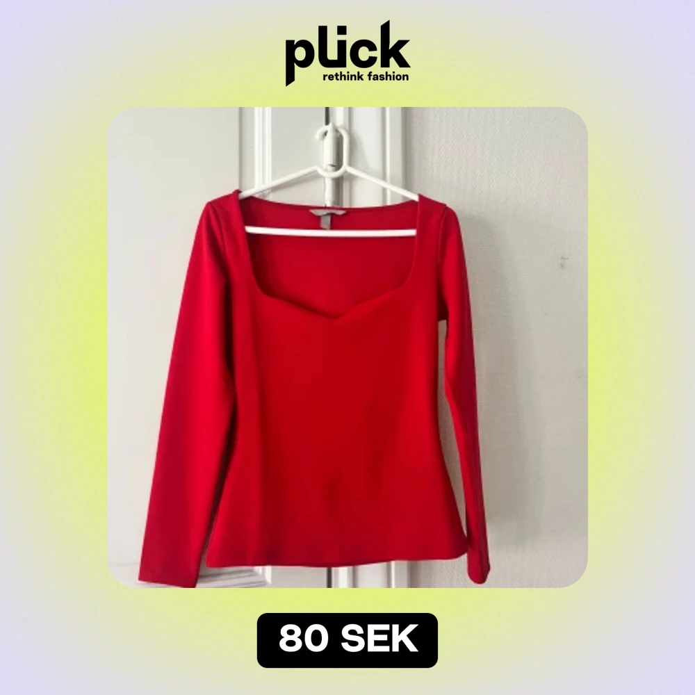 En sjukt fin röd långärmad tröja från H&M. Tröjan har en fyrkantig halsringning och är tillverkad i ett lite mer hårt och stretchigt material som ger en bekväm passform. Och som man ser på sista bilden så har den ett innetyg så man inte behöver använda bh💞