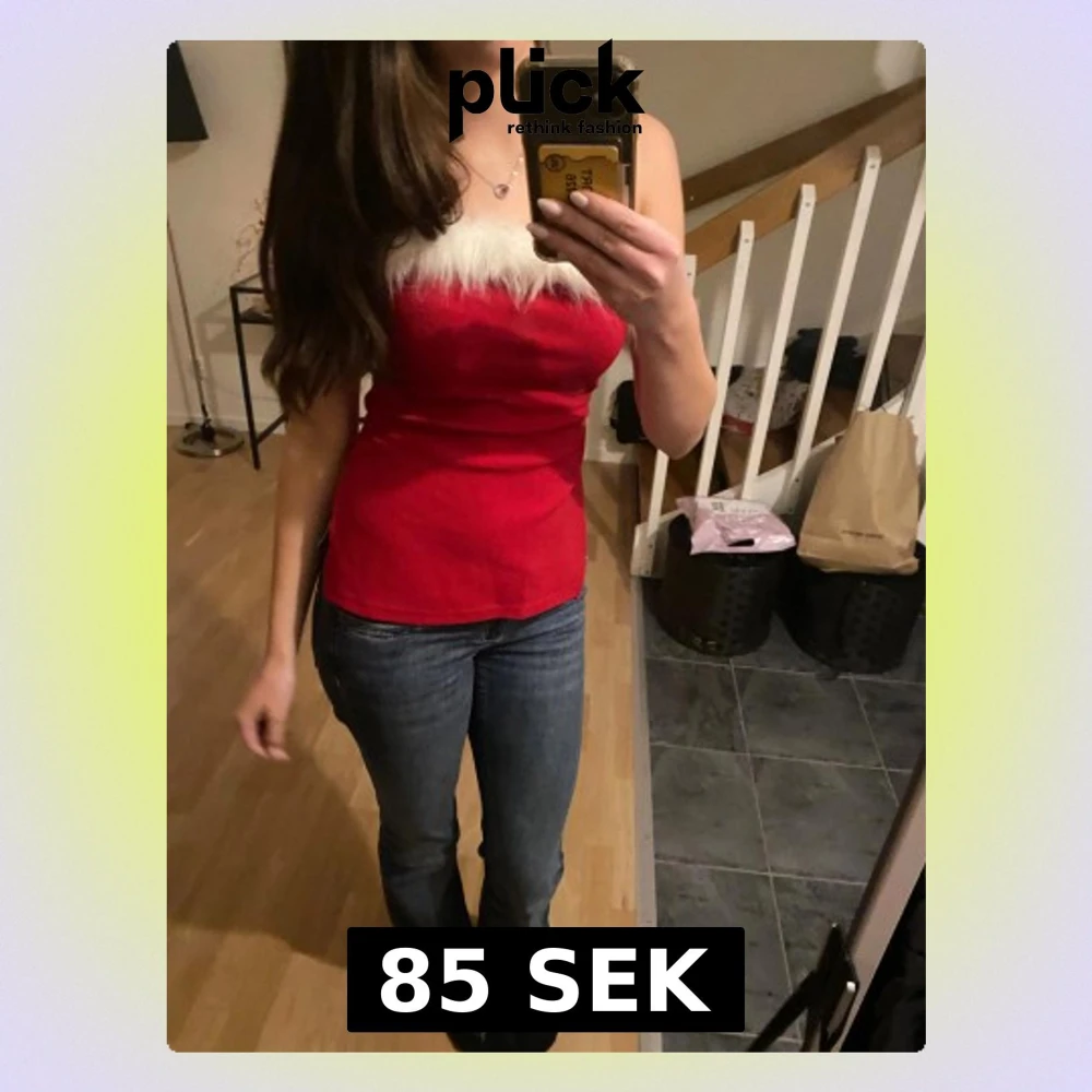 Säljer en röd jul topp med en vit fluffig överdel, perfekt för julens alla tillfällen. Toppen är axelbandslös och har en snygg slits på sidan som ger en cool detalj. Materialet känns mjukt och stretchigt, och toppen sitter tight mot kroppen💞