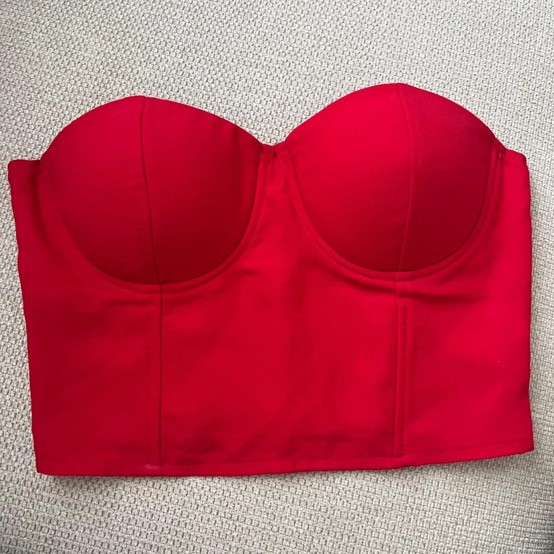 Snygg röd korsettopp från NLY Trend med markerade kupor och croppad passform. Toppen är axelbandslös och har dragkedja bak för enkel påklädning. Perfekt för dig som vill sticka ut med en färgstark look.