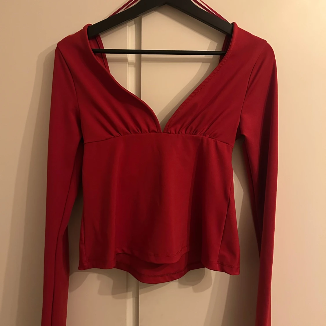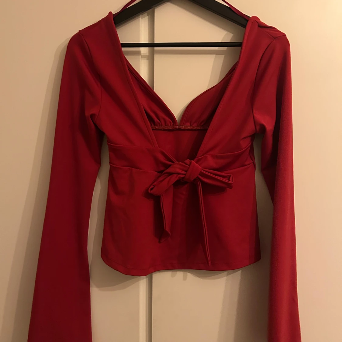 Röd långärmad omlottopp med knyt