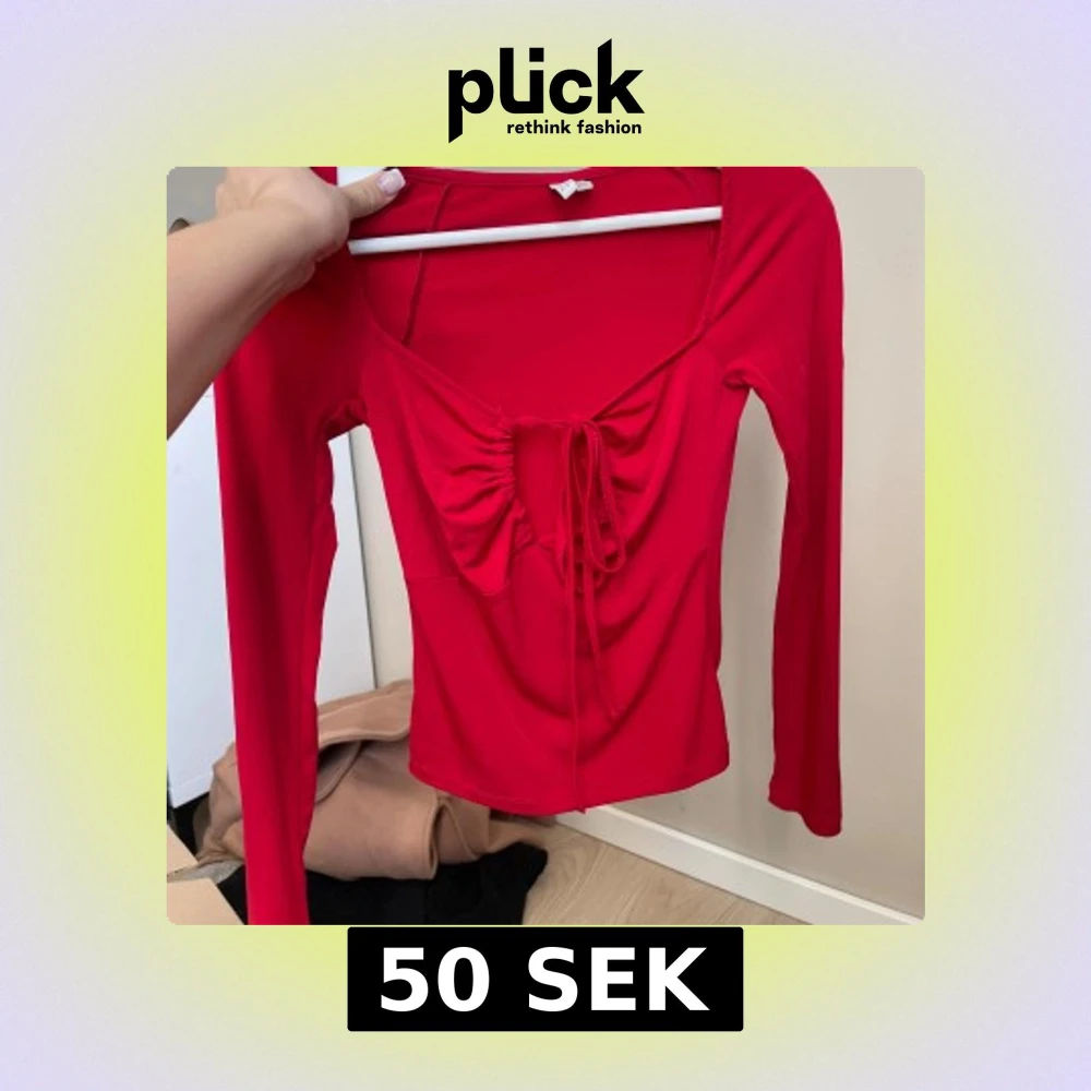 Säljer en röd långärmad topp från NLY Trend i storlek XS. Toppen har djup v-ringning med snygg snörningsdetalj framtill och croppad passform. Mjuk och stretchig känsla, perfekt för att sticka ut lite extra.