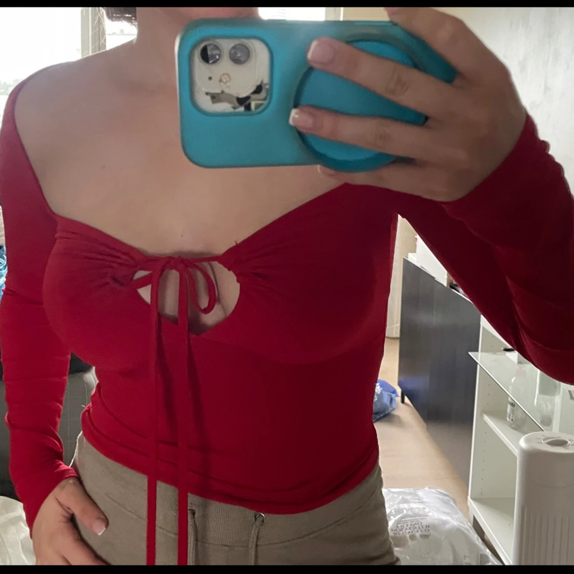 Röd långärmad topp med snörning NLY Trend