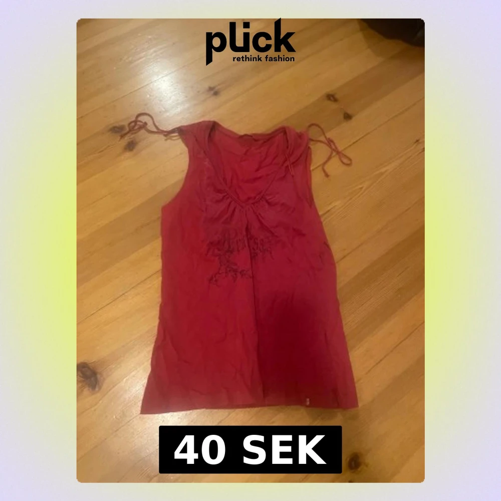 Säljer en röd linnetopp från edc by Esprit i storlek L. Toppen har tunna axelband med knyt och ett tryck med texten 'Princess' framtill. Materialet är mjukt och lätt bomull, perfekt för varma dagar. Snygg v-ringning och avslappnad passform.
