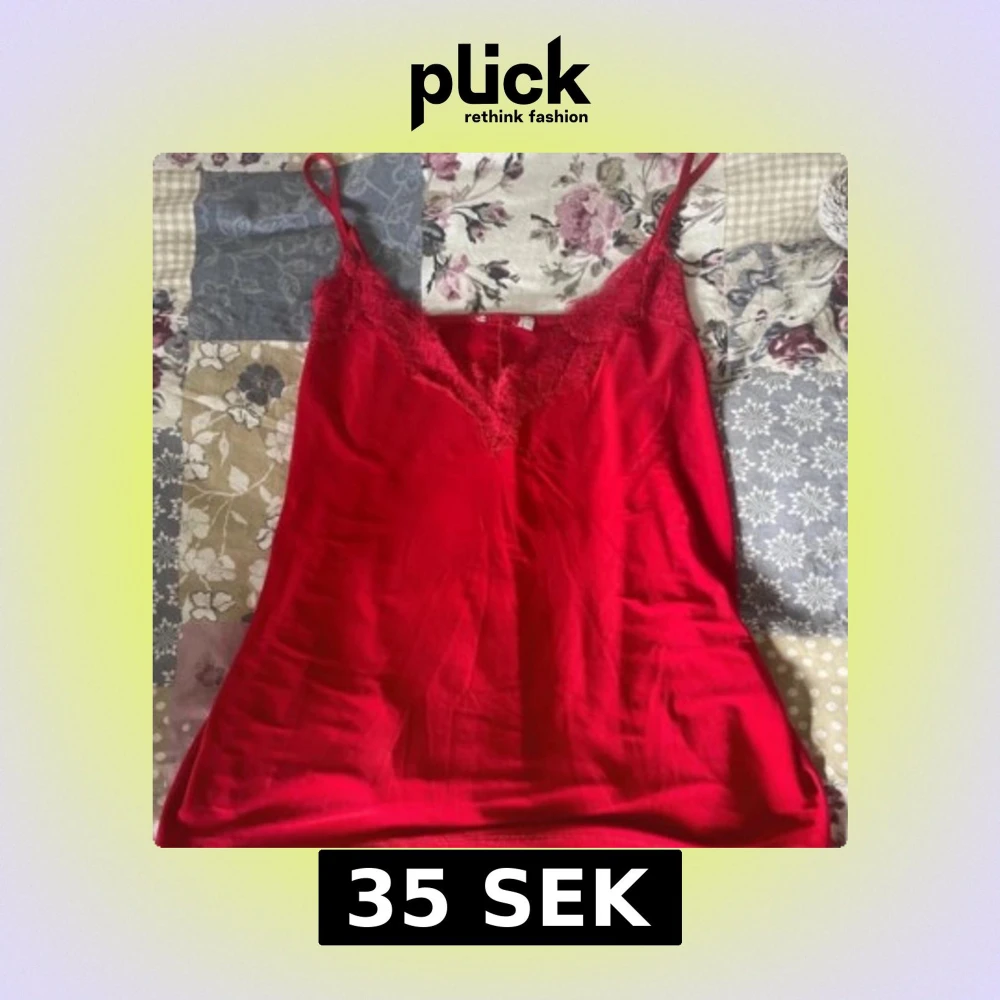 Snygg röd linnetopp med tunna axelband och v-ringning dekorerad med spets. Toppen har en mjuk och följsam känsla, perfekt för att lyfta vilken outfit som helst. Enkel att matcha och ger en trendig vibe.