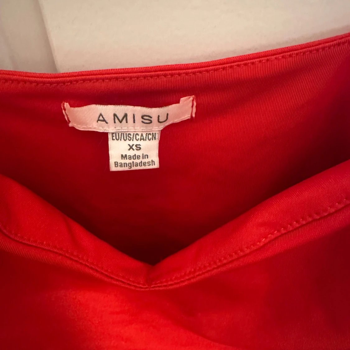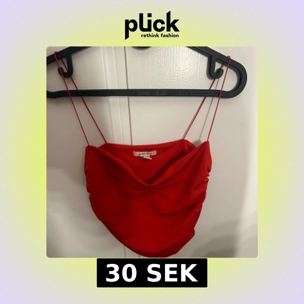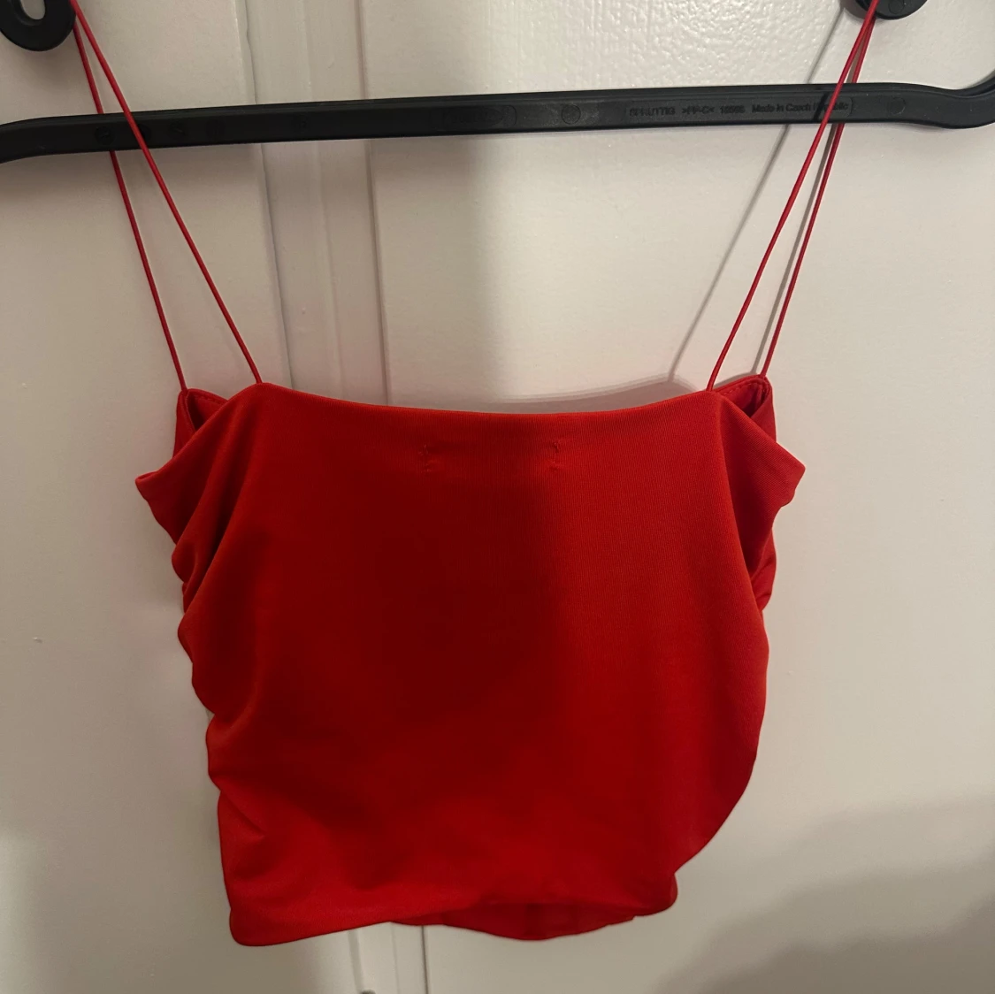 Snygg röd linnetopp från Amisu med tunna axelband och draperad framsida. Toppen har en croppad passform och är tillverkad i ett mjukt, stretchigt material som sitter bekvämt. Perfekt för dig som vill sticka ut med en enkel men trendig look.