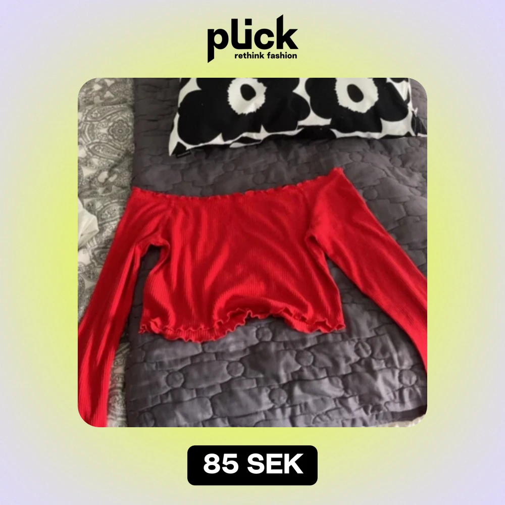 Säljer en röd tight off shoulder tröja, som också är croppad i modellen