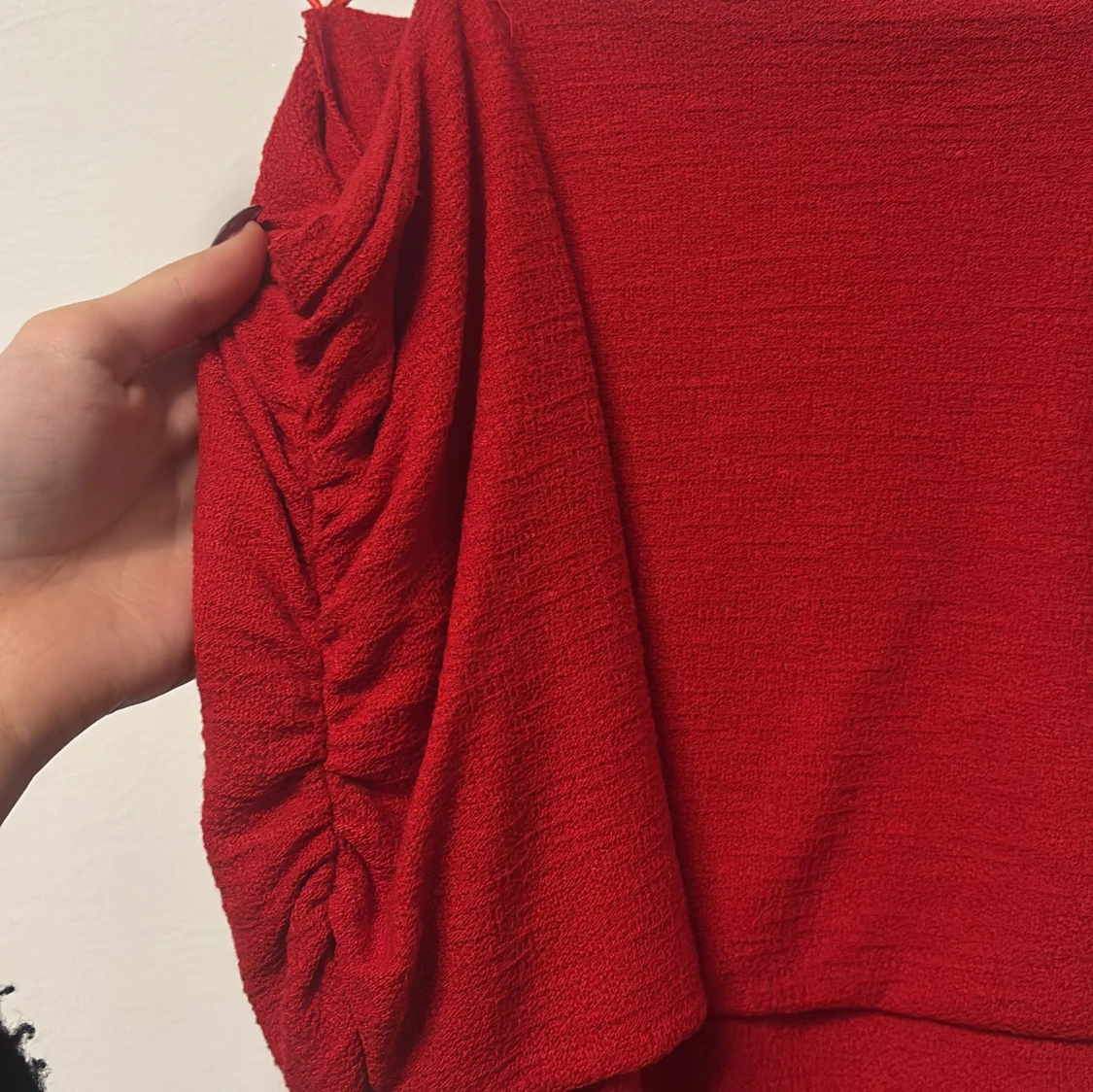 Har en åtsittande passform med rynkade detaljer. Endast använd en gång så i nyskick. Strl XS