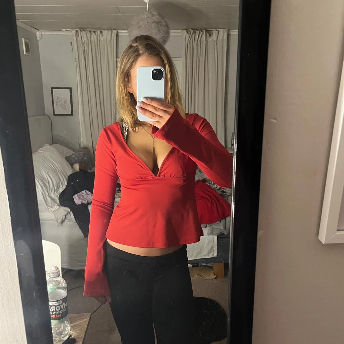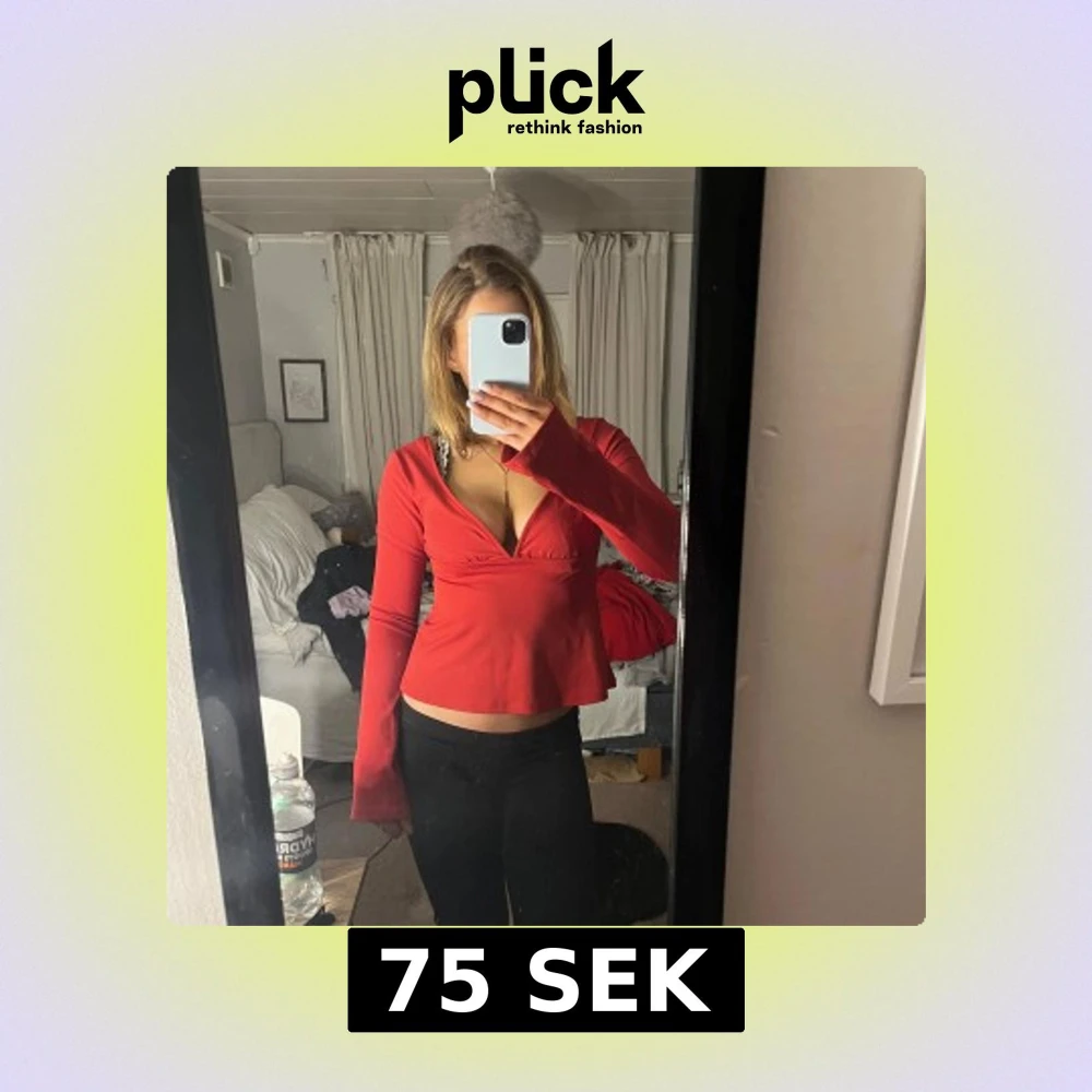 Snygg röd omlottopp med knyt i midjan och v-ringad design. Knappt använd och säljer då jag inte använder den 💕