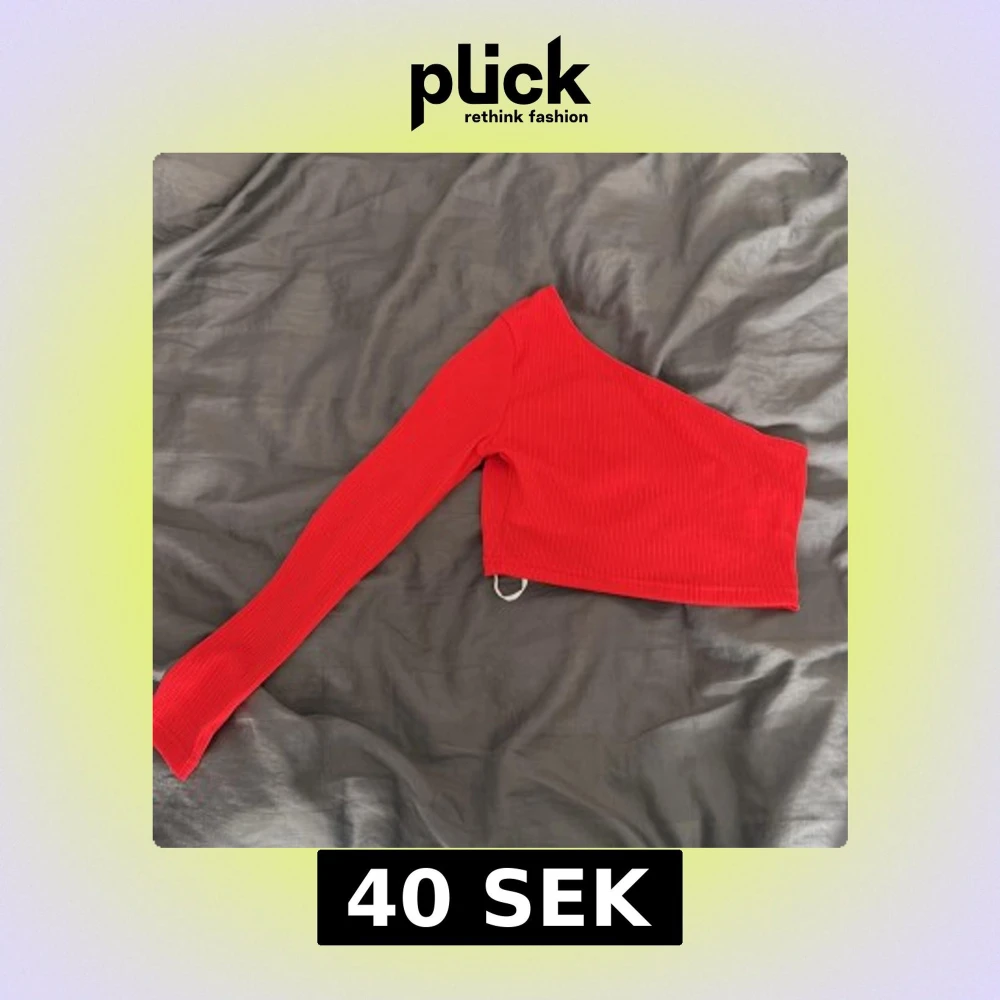 Säljer en röd ribbad one shoulder topp från SHEIN i storlek S. Toppen har lång ärm på ena sidan och är croppad i modellen. Perfekt för dig som vill sticka ut med en cool och trendig look.