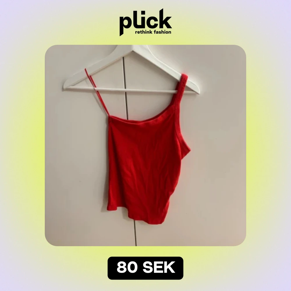 Säljer en snygg röd oneshoulder topp med smala axelband. Toppen är ribbad och har en tight passform.