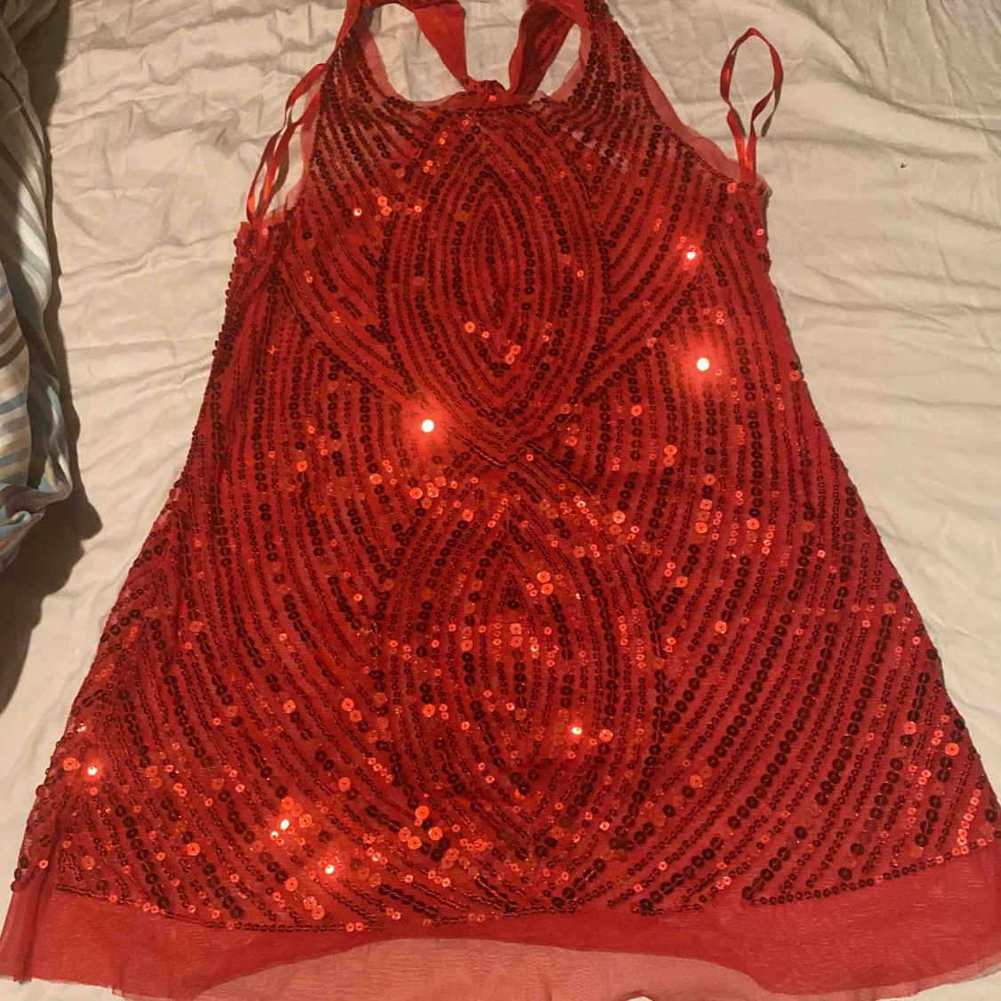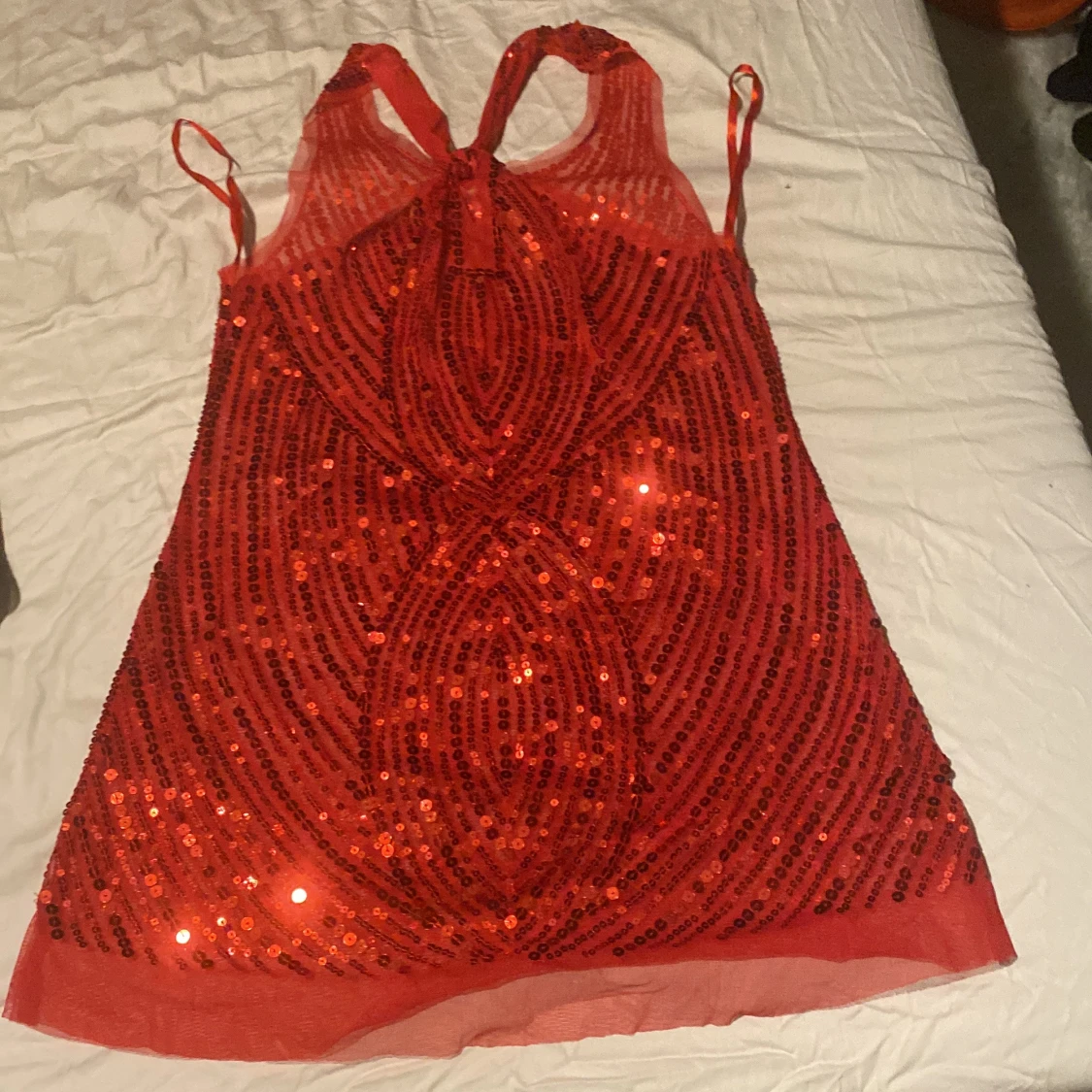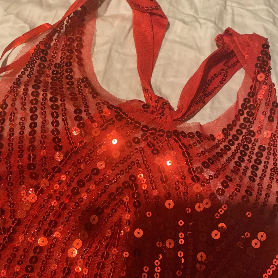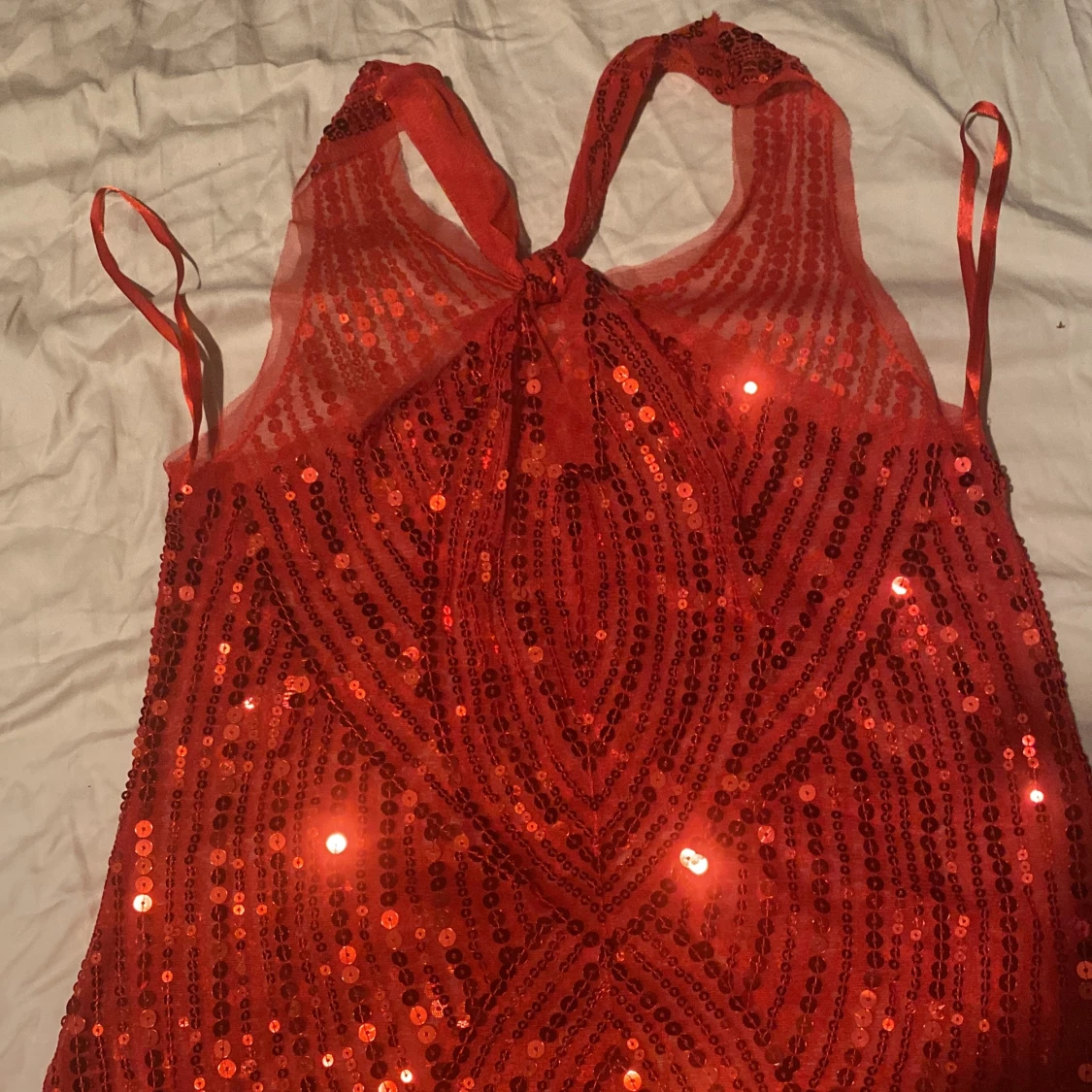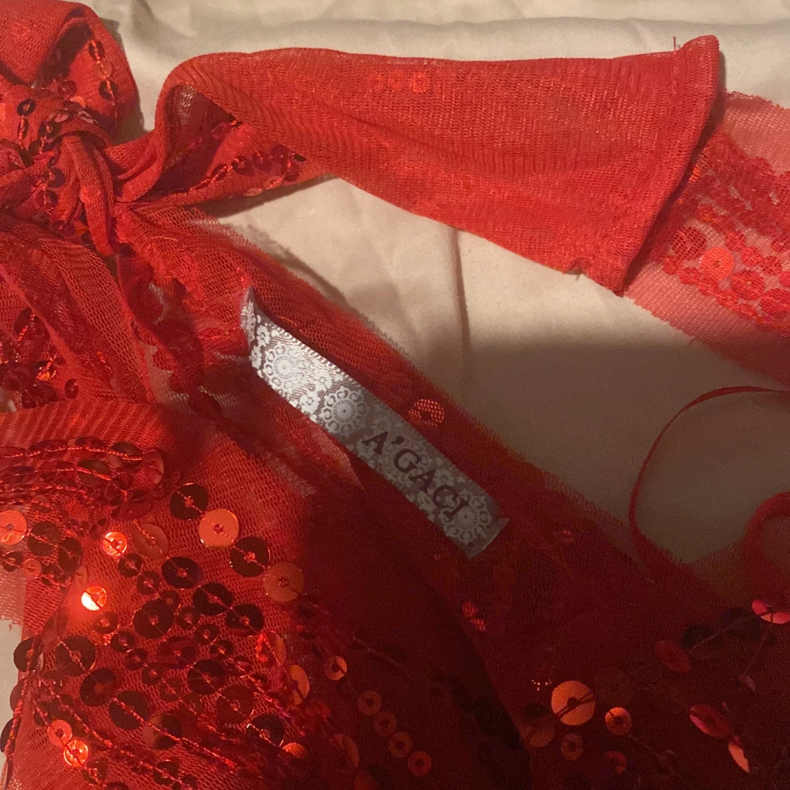 Supersnygg röd paljettlinne från A'gaci med glittriga paljetter i geometriskt mönster. Linnet har halterneck med knyt i nacken och är ärmlös. Perfekt för dig som vill sticka ut med en riktigt glammig look.