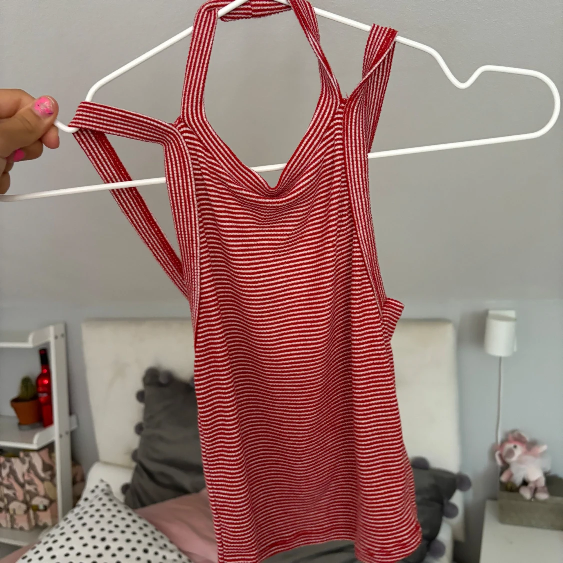 Säljer denna röd vit randiga topp från pulla and bear! Älskar denna till sommaren och den har så fina detaljer! ❤️🤍