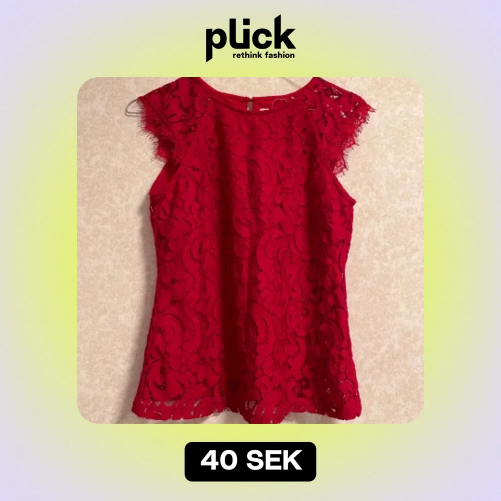 Säljer en fin röd spetsblus. Den har ett vackert mönster i spetsmaterial. Perfekt för festliga tillfällen eller en utekväll.